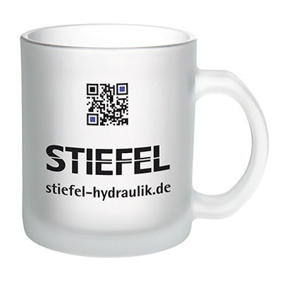 Wykonany ze szronionego szkła kubek reklamowy o popularnym cylindrycznym kształcie